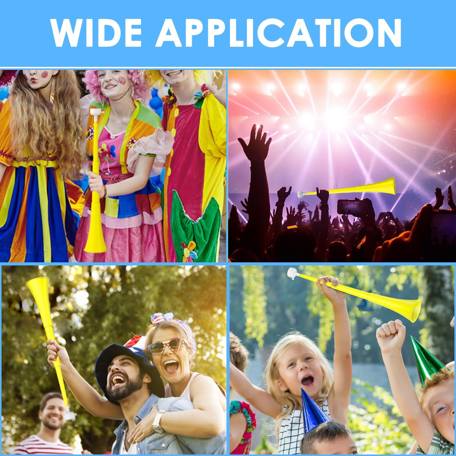 About this item Noise Maker Blow Horn: Unleash Your Team Spirit! Get ready to elevate your game-day experience with our 24” Stadium Horn! Unlike ordinary noisemakers, this striking horn will ensure everyone knows you’re a dedicated fan. Its collapsible design allows you to easily adjust the length, making it super convenient to carry. Perfect for soccer matches, American football games, the World Cup, and baseball season—show your support loud and proud! Suitable Size for Everyone: Our blow trumpet horn extends to 24 inches and collapses to a compact 8.4 inches, with a diameter of approximately 4.33 inches. Its design makes it easy for most people to hold and carry, fitting easily into most bags. Whether you need to shorten it or extend it, this portable horn is always ready for action at a moment’s notice! Safe to Use: Our collapsible stadium noise makers are made from premium, non-toxic plastic, ensuring they’re safe to handle. They’re sturdy, resistant to breaking or tearing, and designed for long-lasting use. Perfect for creating fun and captivating sounds, these noise makers are sure to grab everyone’s attention at your next party! Nice Party Accessories: this cheer horn is naturally loud, and it is reusable and never be run out; Plus, Its powerful sound is much more impactful than a traditional whistle, making it perfect for creating fun and lively effects. Whether you’re celebrating street parties, parades, sports events, Mardi Gras, birthdays, or New Year’s Eve, this horn will help set the festive atmosphere! Versatile Applications: Ideal for pranksters, party lovers, and anyone who enjoys making some noise! Perfect for sporting events like football, basketball, rugby, and ice hockey—cheer on your favorite team in style! Great for graduations, festivals, birthday parties, carnivals, and concerts to liven up the atmosphere. Additionally, the loud sports horn can also help police and rescuers locate you in case of an emergency. › See more product details
